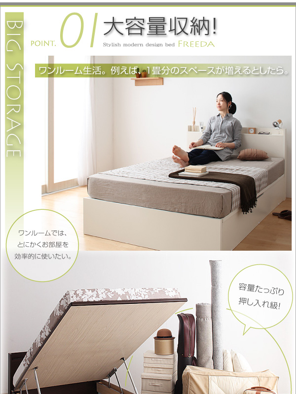 収納ベッド セミダブル・ラージ【横開き】【Freeda】【国産薄型ポケットコイルマットレス付】ナチュラル 国産跳ね上げ収納ベッド【Freeda】フリーダ【送料込/送料無料】-その他