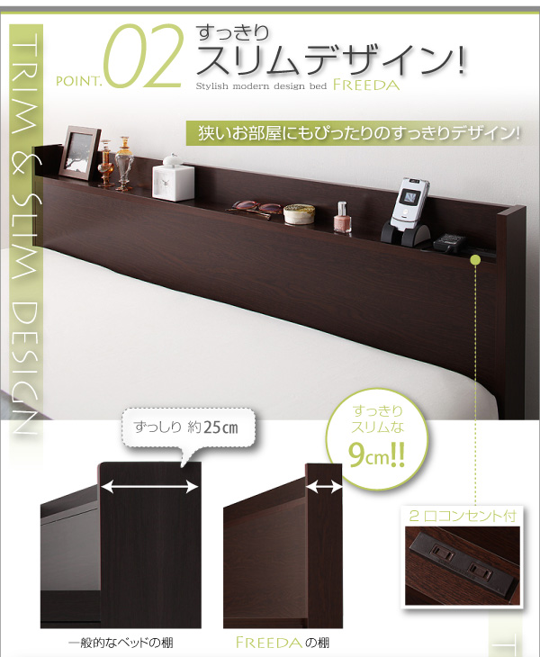 ベッド 木製 北欧風 宮棚 コンセント 収納 引出 エコファ【代引及びお届け日時指定不可】