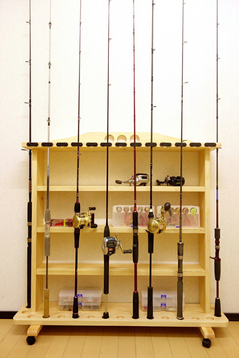 【家具職人の作ったロッドスタンド】 RS-23 2ピース用 太穴 17本用 キャスター付き ヒノキ無垢材使用 受注生産品送料2000円(全国一律)-その他