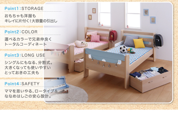 子どもの成長や部屋のレイアウトによって、カタチを変えられる分割式。