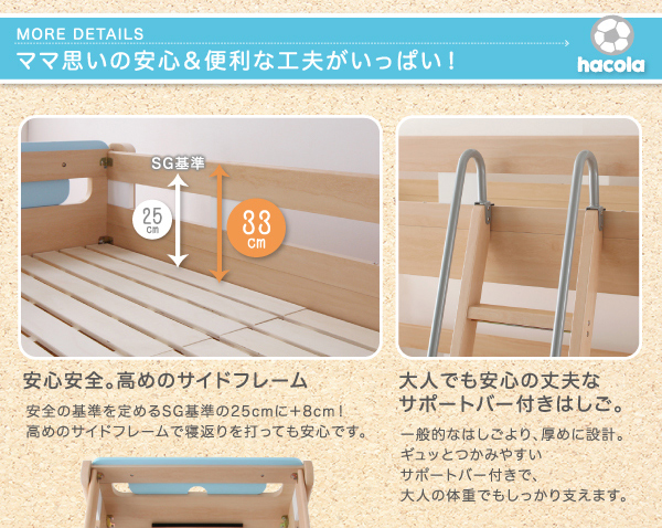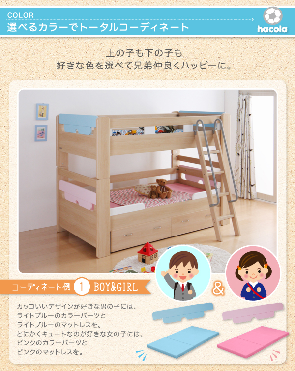 こちらは「二段ベッド【hacola】【カラーメッシュマットレス付き(ブルー×ブラック)】フレームカラー:ナチュラル パーツカラー:ナチュラル×グリーン 引出し収納付き二段ベッド【hacola】ハコラ」の商品ページです。商品画像や説明文には色違いやサイズ違いの商品情報が載っている場合がございます。