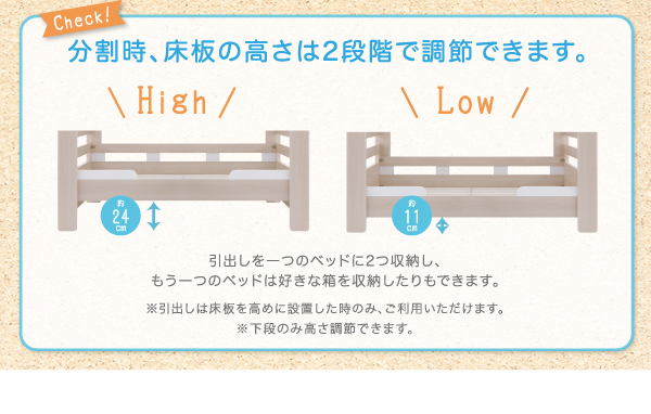 ※引出しは床板を高めに設置した時のみ、ご利用いただけます。