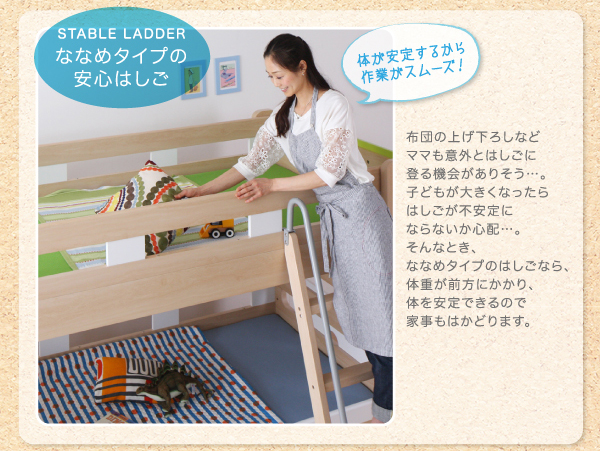 布団の上げ下ろしなど、ママも意外とはしごに登る機会がありそう…。子どもが大きくなったら、はしごが不安定にならないか心配…。