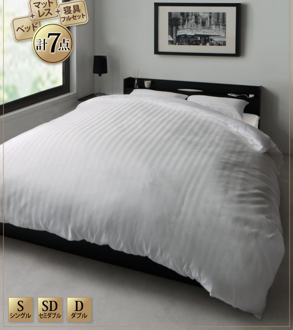 「ベッド+マットレス+寝具フルセット 計7点」