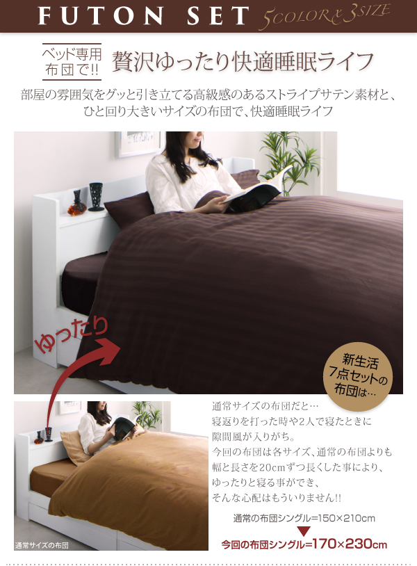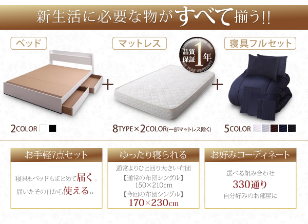 ベッド専用布団付き!カラーが選べる新生活7点セット