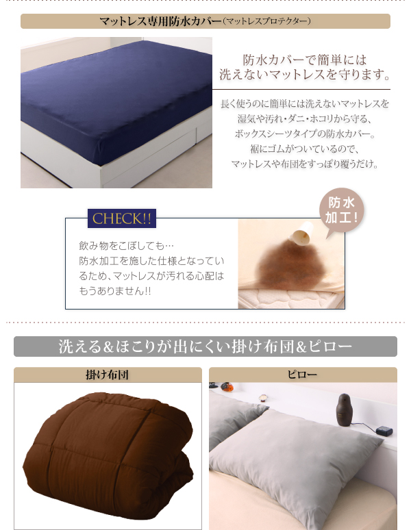 [掛け布団・掛け布団カバー・ピロー・ピローケース・防水マットレスカバー]